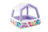 בריכת ילדים מתנפחת ונעימה במיוחד לקיץ, עם גגון עליון רחב שמספק הצללה בזמן המשחק. פתרון מעולה לגינה, לחצר או למרפסת גדולה – לשכשוך, משחק וקירור בימים חמים.