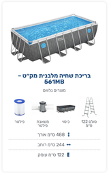 בריכת אולטרה 4.88x2.44x1.22 סמ -Bestway 561MB ( !!!2026 חדש !!! חלונות )