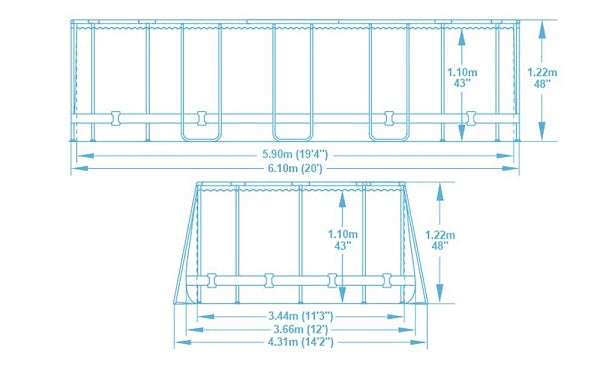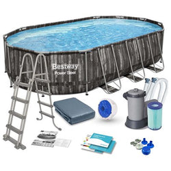 בריכה לגינה / לחצר אובלית תוצרת חברת BESTWAY עשויה ממסגרת מתכת מגולוונת, דוחה אבק וחלודה ויריעת פוליאסטר ו- PVC.