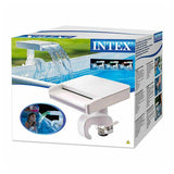 מפל מים המתחבר למשאבה בעל נורות לד המאירות את הבריכה בצבעים שונים.