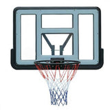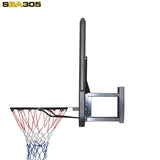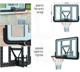 לוח כדורסל שקוף 110/75 ס"מ עם מנגנון הרחקה מהקיר וחישוק קפיצי